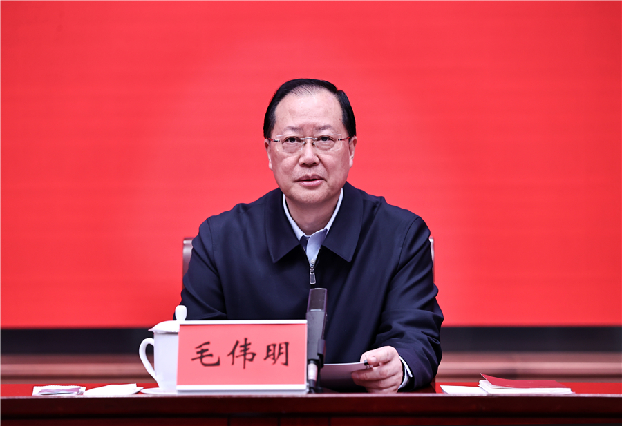 毛伟明在主持时指出,要把学习贯彻全国两会精神作为重要政治任务,与贯彻落实党的二十大精神结合起来,与习近平总书记关于湖南工作的重要讲话和指示批示精神结合起来,与各地区各部门实际结合起来,努力交出中国式现代化的湖南好答卷。把全国两会精神转化为推动高质量发展的强大动力,全面落实“三高四新”战略定位和使命任务,在保持量的合理增长的同时,把更多的精力和功夫下在质的有效提升上,加快质量变革、效率变革、动力变革,努力为全国高质量发展作出湖南贡献。把全国两会精神转化为做好当前工作的实际成效,全力以赴打好“发展六仗”,抓紧抓实项目建设、促进消费、扩大外贸、企业服务、春耕生产、安全生产等工作,推动一季度“开门稳”“开门红”,为完成全年目标任务打下坚实基础,确保现代化新湖南建设开好局起好步。
